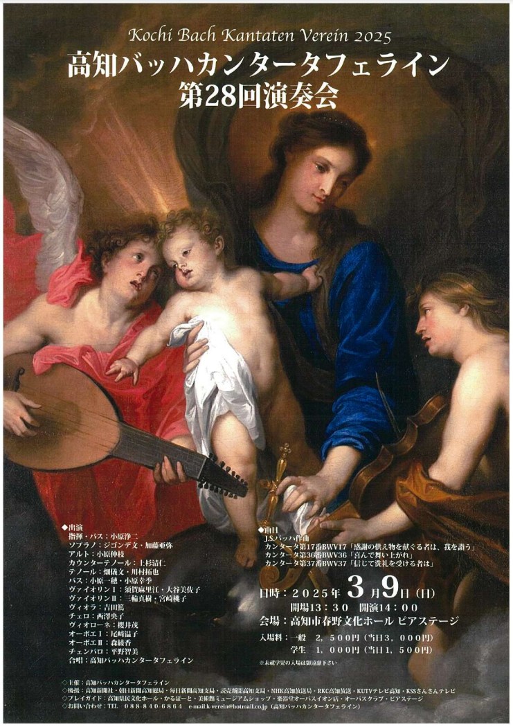 音楽教育コースの小原浄二教授が,3月9日(日)に高知市春野文化ホール ピアステージで開催される「高知バッハカンタータフェライン第28回演奏会」にて,指揮者を務めます。