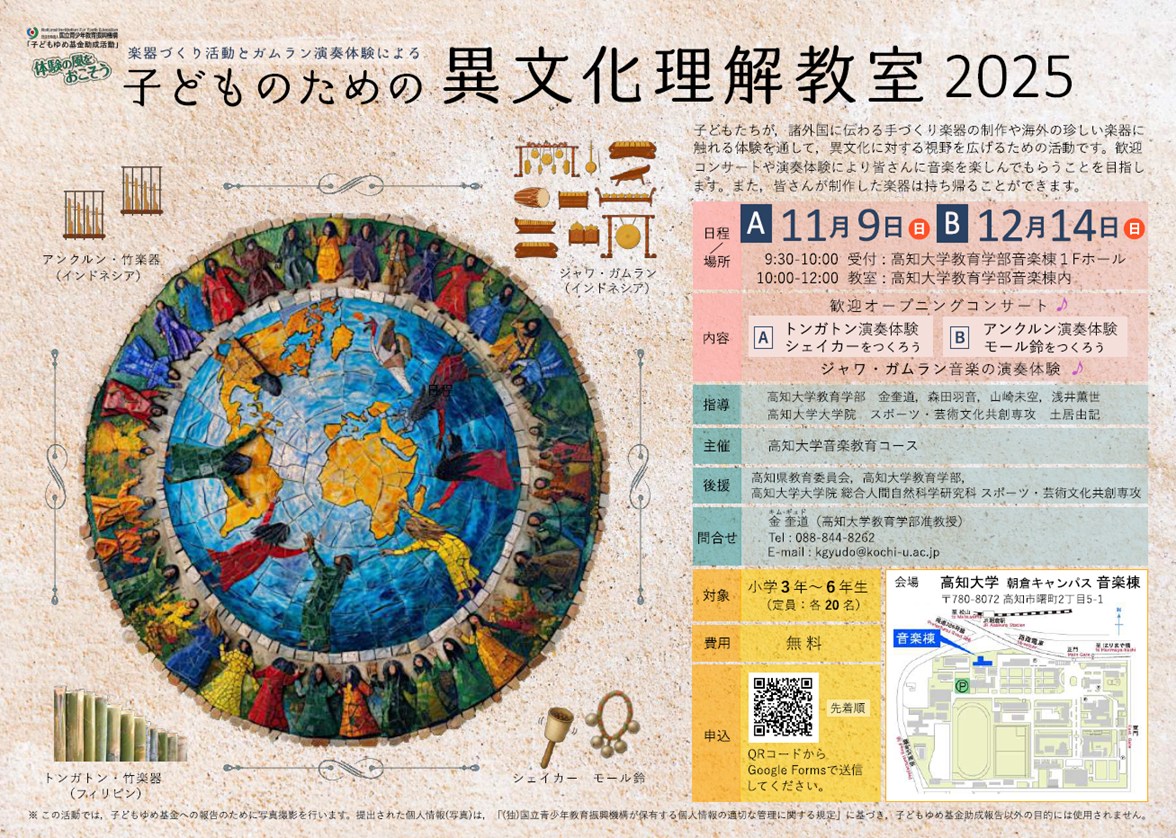 当日は,音楽教育コースの金奎道准教授や同コースの学生が指導を担当いたします。