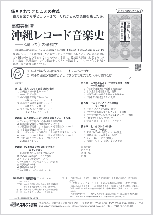 教育学部門の高橋美樹教授が,『沖縄レコード音楽史―〈島うた〉の系譜学』(ミネルヴァ書房)を3月30日に刊行しました。