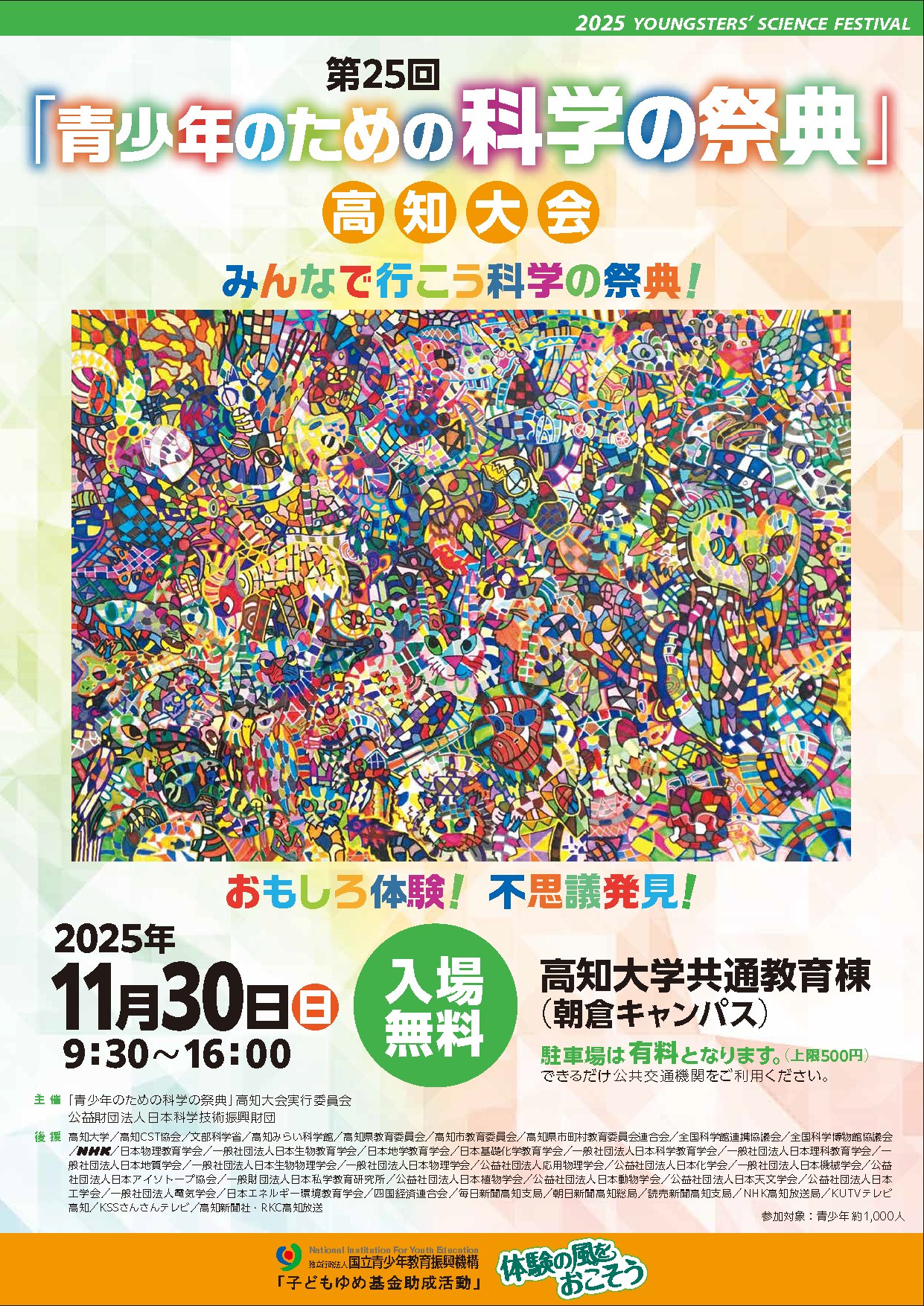 〇 後援:高知大学,高知CST協会,文部科学省,高知みらい科学館 ほか