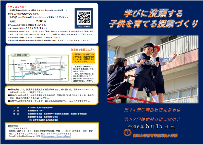 6月15日(土)に,附属小学校において,第74回学習指導研究発表会,第52回複式教育研究協議会「学びに没頭する 子供を育てる授業づくり」を開催します。