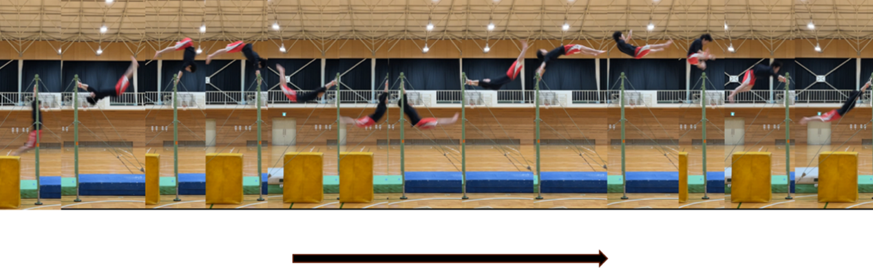 保健体育教育コースの神門大輔 講師と,本学部卒業生の岡村太洋さん(現:高知大学大学院スポーツ・芸術文化共創専攻M2)が共同で体操競技の指導法開発を行いました。本研究は,体操競技における鉄棒の手放し技「トカチェフ」(懸垂前振り開脚背面とび越し懸垂)の習得過程を,発生運動学の立場から分析したものです。従来の運動研究は力学や生理学に基づく客観的分析が主流ですが,発生運動学では学習者本人の体感や「コツ」「カン」といった主観的な動感(身体感覚)を重視します。